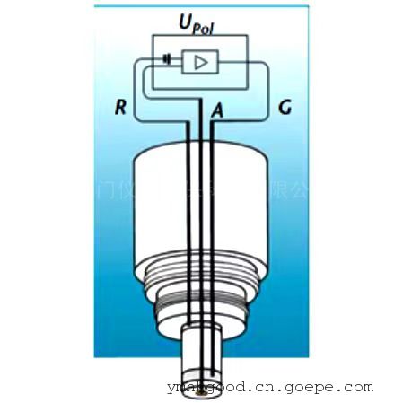 与普通的二极式电极不同,TriOxmatic系列传感器采用恒电位三极式测试原理。整个电化学测试系统包括一个金阴极(工作电极A)和2个银电极,其中一个银电极为计数电极G,另一个为参考电极R,参考电极没有电流流过,这样参考电极上的电位非常稳定,增强了电极测量结果的稳定性,提高了整个溶解氧测试系统的准确度。